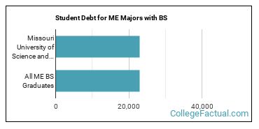 While getting their bachelor's degree at Missouri University of Science and Technology, me students borrow a median amount of $34,367 in student loans. This is higher than the the typical median of $30,590 for all me majors across the country.
