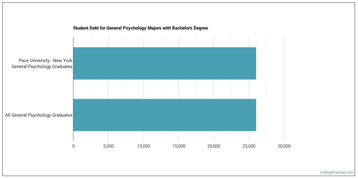 While getting their bachelor's degree at Pace University, psychology students borrow a median amount of $25,000 in student loans. This is not too bad considering that the median debt load of all psychology bachelor's degree recipients across the country is $26,000.