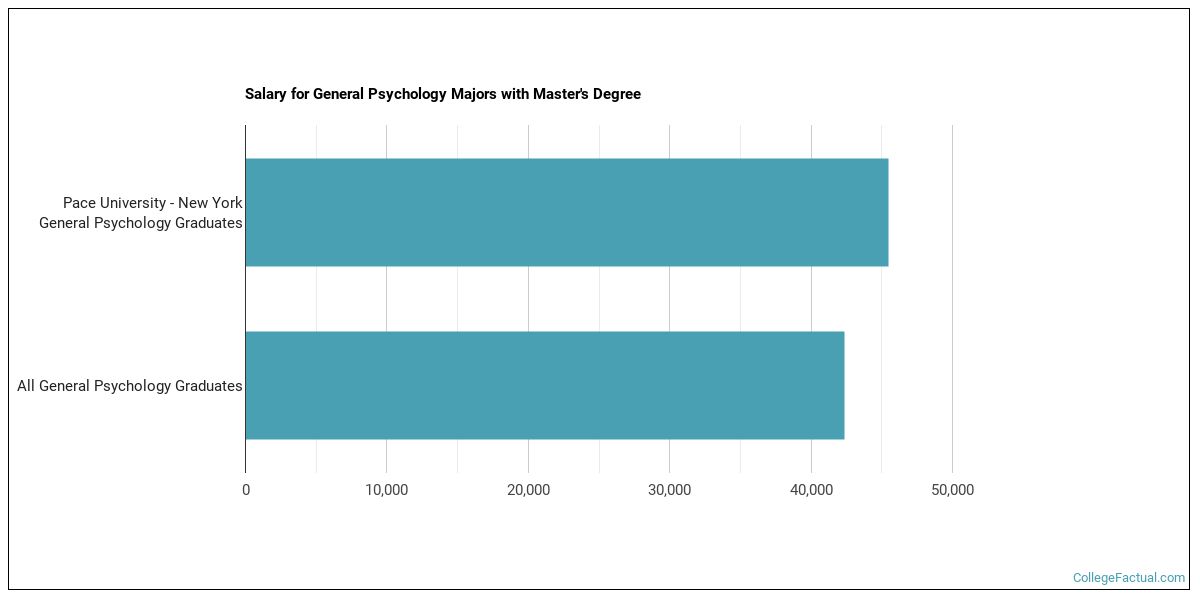 Graduates of the master's psychology program at Pace University make a median salary of $45,495. This is a better than average outcome since the median salary for all psychology graduates with a master's is $42,335.