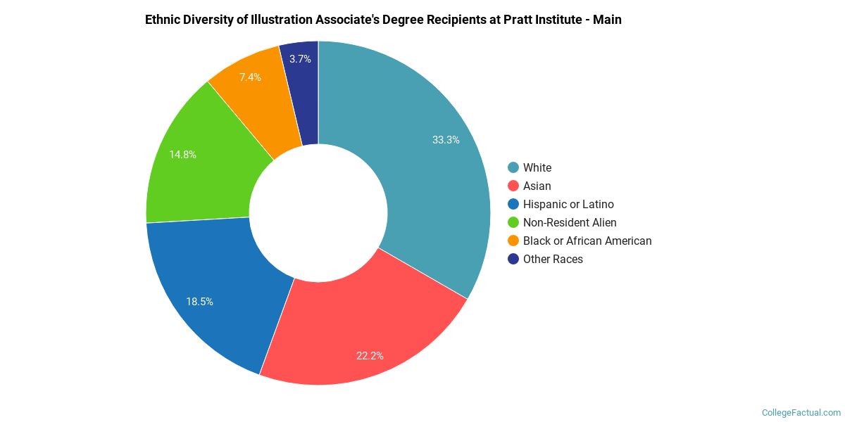 The following table and chart show the ethnic background for students who recently graduated from Pratt Institute - Main with a associate's in illustration.