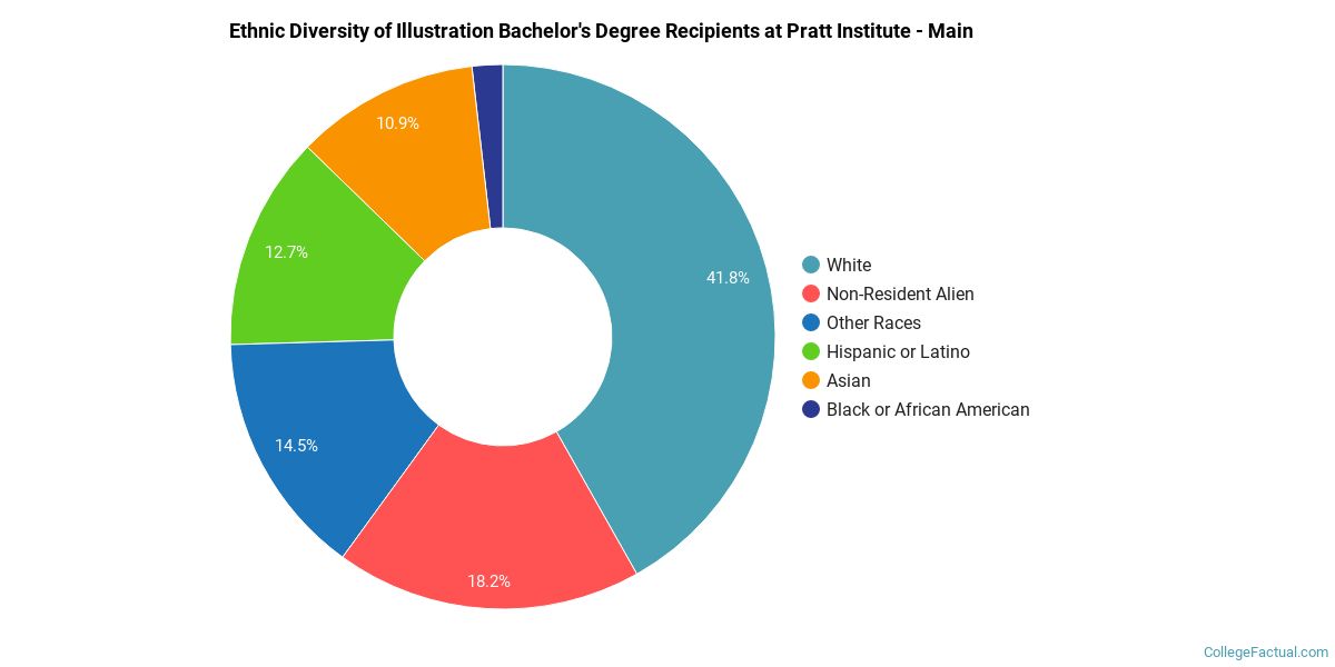 The following table and chart show the ethnic background for students who recently graduated from Pratt Institute - Main with a bachelor's in illustration.