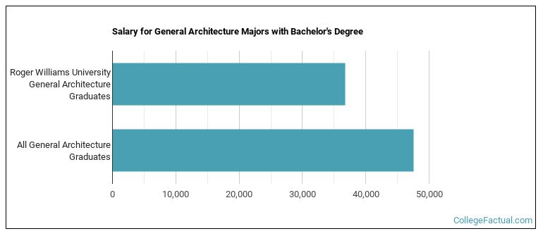 Architecture majors who earn their bachelor's degree from RWU go on to jobs where they make a median salary of $36,750 a year. This is less than $47,542, which is the national median of all architecture majors in the nation who earn bachelor's degrees.