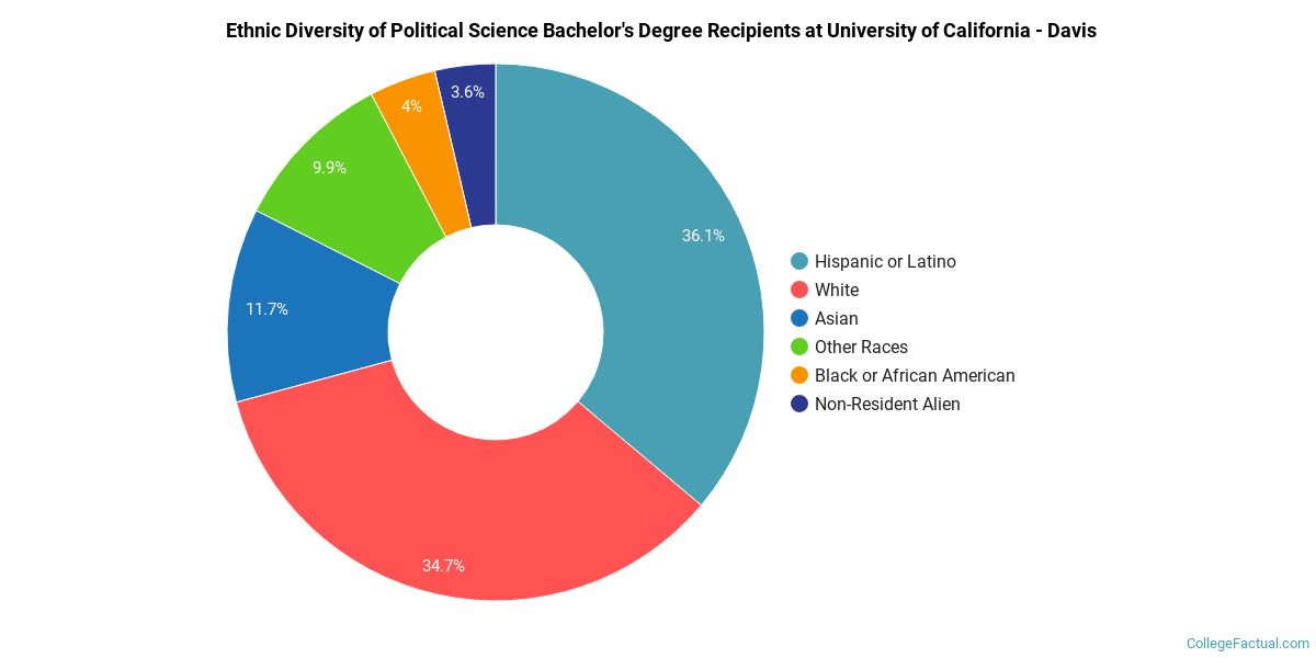 The following table and chart show the ethnic background for students who recently graduated from University of California - Davis with a bachelor's in poly sci.