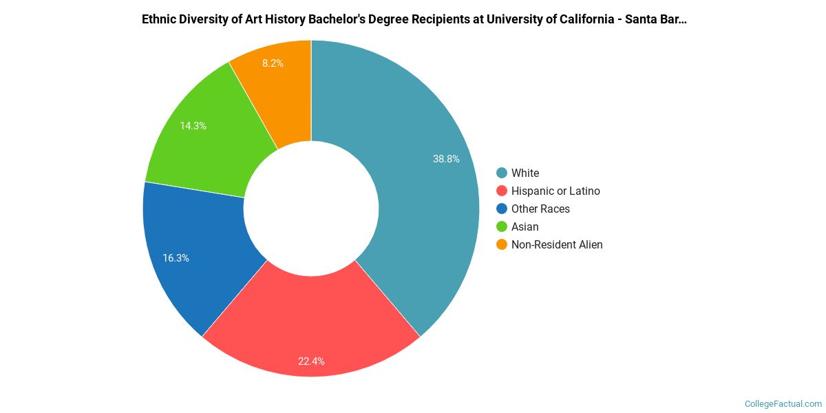 The following table and chart show the ethnic background for students who recently graduated from University of California - Santa Barbara with a bachelor's in art history.