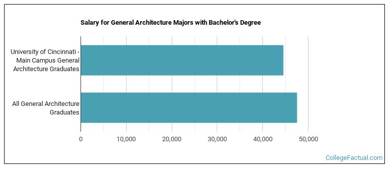 The median salary of architecture students who receive their bachelor's degree at UC is $44,598. This is less than $47,542, which is the national median of all architecture majors in the nation who earn bachelor's degrees.