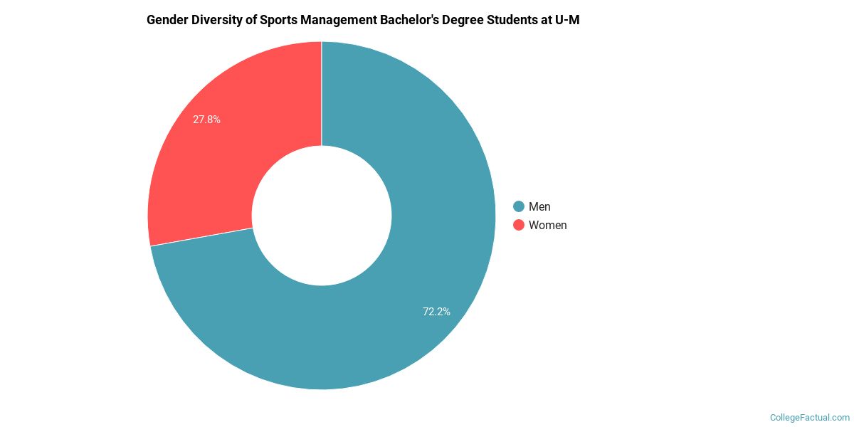 For the most recent academic year available, 72% of sports management bachelor's degrees went to men and 28% went to women.