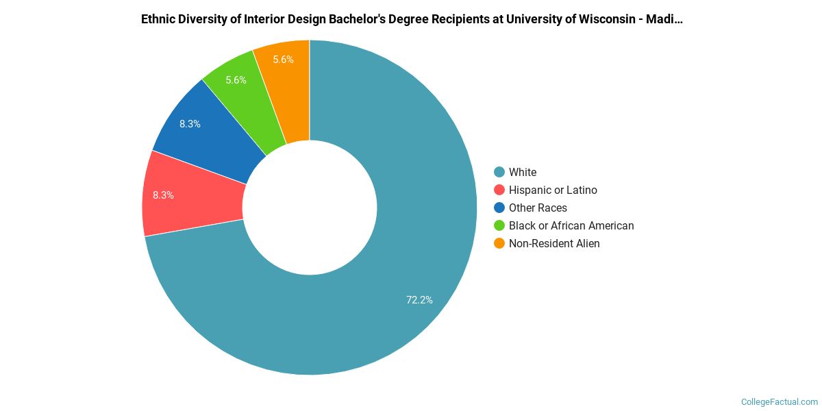 The following table and chart show the ethnic background for students who recently graduated from University of Wisconsin - Madison with a bachelor's in interior design.