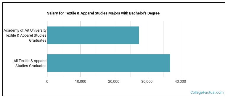 Textile Studies majors who earn their bachelor's degree from Academy of Art University go on to jobs where they make a median salary of $27,630 a year. Unfortunately, this is lower than the national average of $36,945 for all textile studies students.