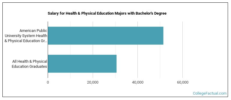 The median salary of phys ed students who receive their bachelor's degree at American Military University is $51,381. This is great news for graduates of the program, since this figure is higher than the national average of $30,571 for all phys ed bachelor's degree recipients.