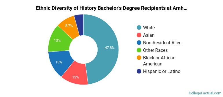 We've pulled together some essential information you should know about the program, including how many students graduate each year, the ethnic diversity of these students, average starting salaries, and more. We've also included details on how Amherst ranks compared to other colleges offering a major in history.