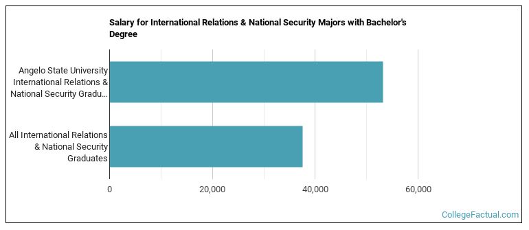 International Relations majors who earn their bachelor's degree from Angelo State go on to jobs where they make a median salary of $53,246 a year. This is higher than $37,507, which is the national median for all international relations bachelor's degree recipients.