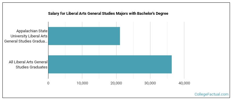 Liberal Arts majors who earn their bachelor's degree from Appalachian State go on to jobs where they make a median salary of $21,143 a year. This is less than $36,340, which is the national median of all liberal arts majors in the nation who earn bachelor's degrees.