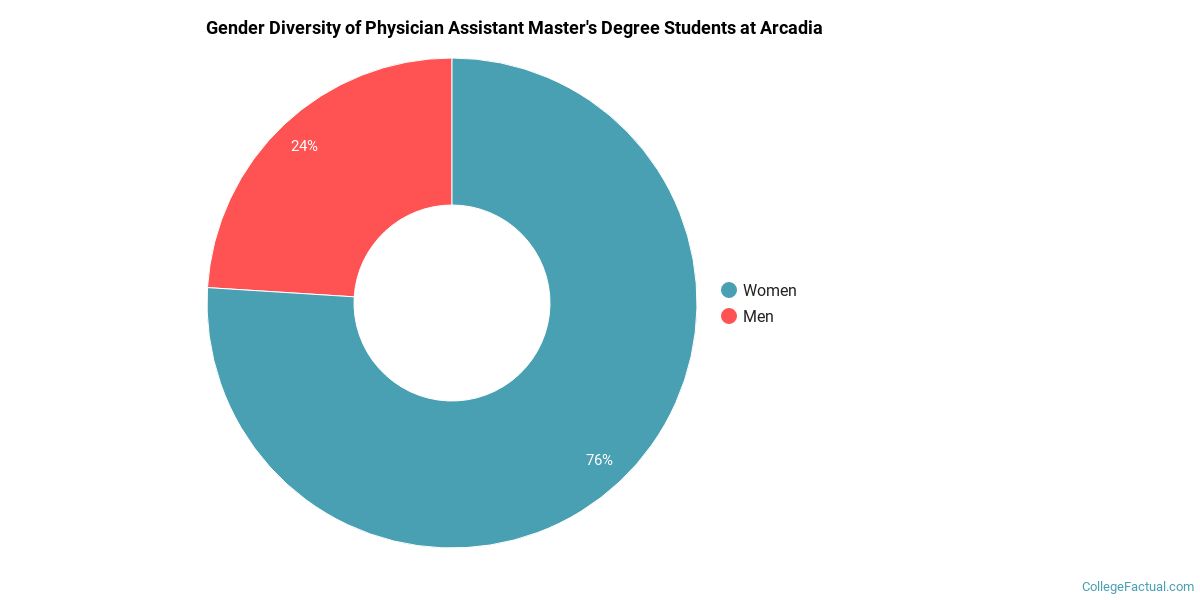 Of the 100 students who graduated with a Master’s in physician assistant from Arcadia in 2021, 24% were men and 76% were women.