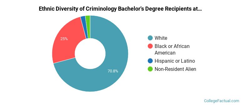The following table and chart show the ethnic background for students who recently graduated from Arkansas State University - Main Campus with a bachelor's in criminology.