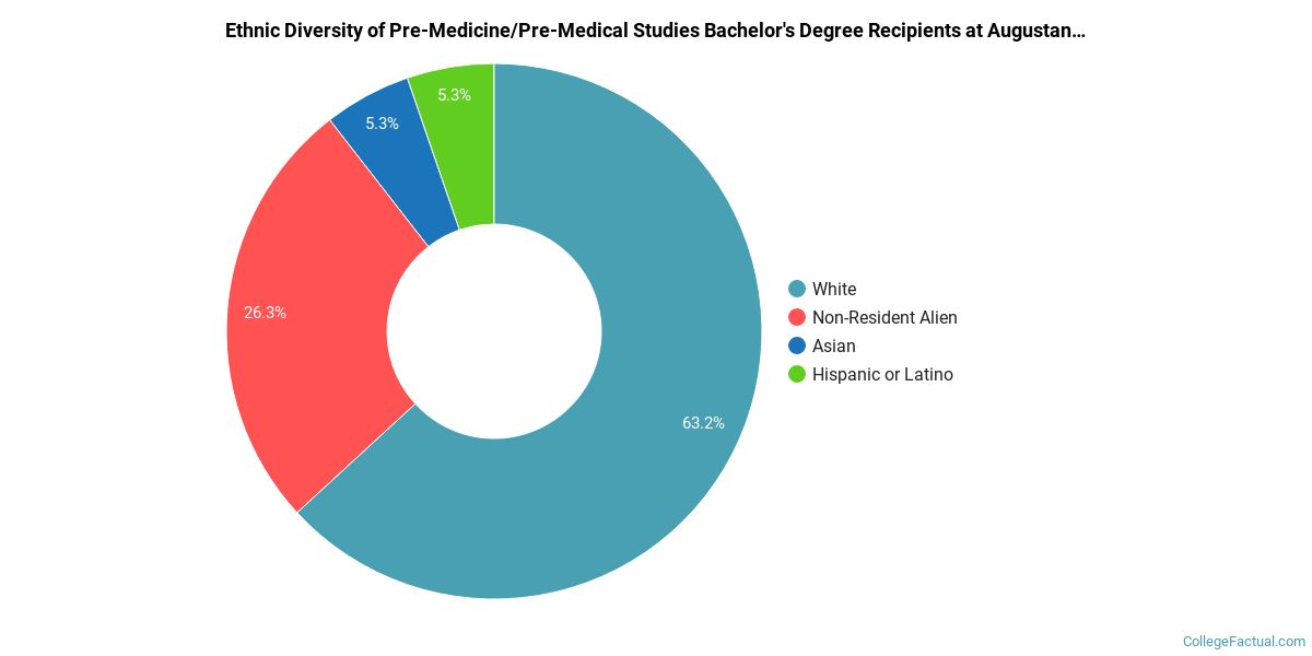 The following table and chart show the ethnic background for students who recently graduated from Augustana College with a bachelor's in pre-medicine/pre-medical studies.