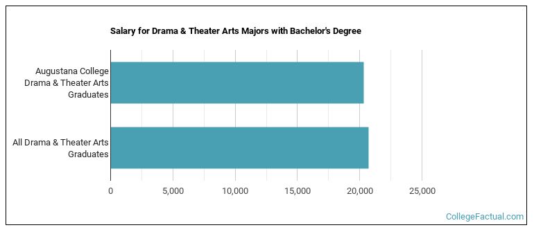 The median salary of theater students who receive their bachelor's degree at Augustana is $20,326. Unfortunately, this is lower than the national average of $20,701 for all theater students.