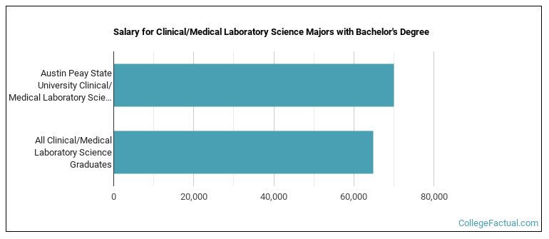 Clinical Laboratory Science majors who earn their bachelor's degree from Austin Peay State University go on to jobs where they make a median salary of $70,028 a year. This is great news for graduates of the program, since this figure is higher than the national average of $64,930 for all clinical laboratory science bachelor's degree recipients.