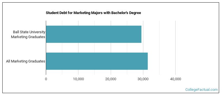 While getting their bachelor's degree at Ball State, marketing students borrow a median amount of $29,475 in student loans. This is not too bad considering that the median debt load of all marketing bachelor's degree recipients across the country is $31,427.