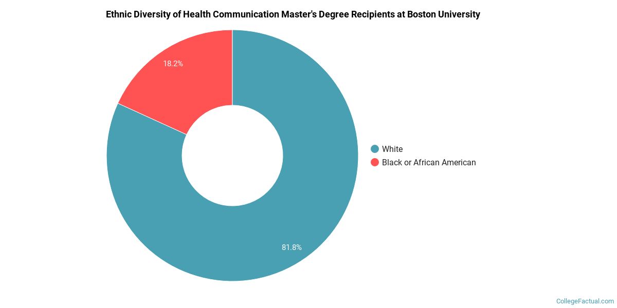 Of the 11 students who graduated with a Master’s in health communication from Boston U in 2021, 18% were men and 82% were women.