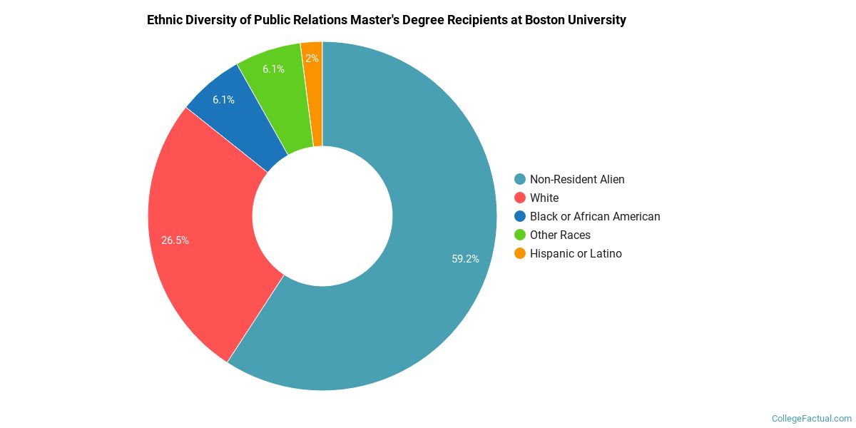 In 2021, 49 students received their master’s degree in pr from Boston U. This makes it the #3 most popular school for pr master’s degree candidates in the country.
