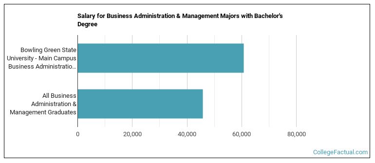 The median salary of business administration students who receive their bachelor's degree at BGSU is $60,807. This is higher than $45,741, which is the national median for all business administration bachelor's degree recipients.