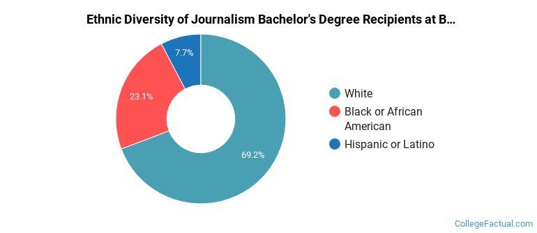 The following table and chart show the ethnic background for students who recently graduated from Bowling Green State University - Main Campus with a bachelor's in journalism.