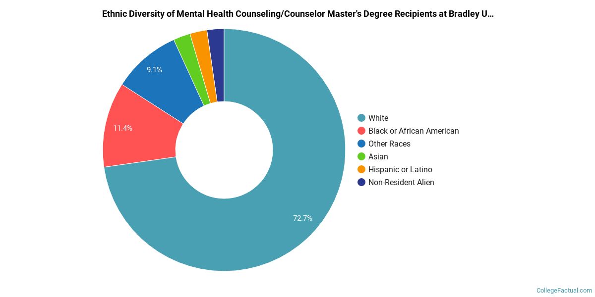 Take a look at the following statistics related to the make-up of the mental health counseling/counselor majors at Bradley University.