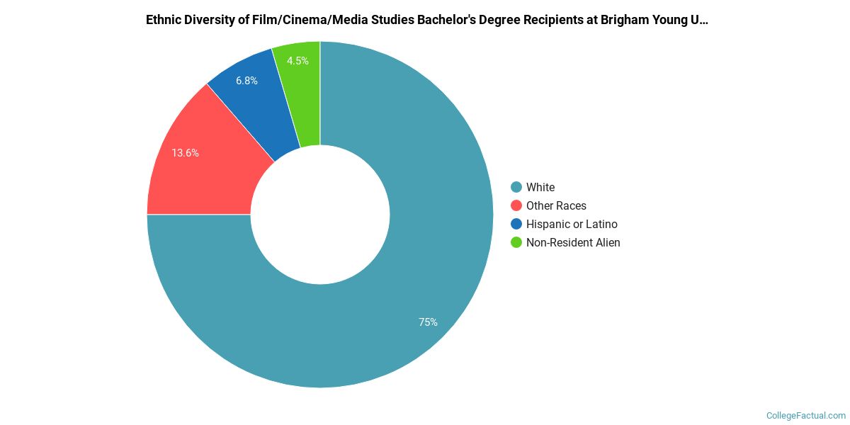 During the 2020-2021 academic year, Brigham Young University - Provo handed out 44 bachelor's degrees in film/cinema/media studies. This is an increase of 5% over the previous year when 42 degrees were handed out.