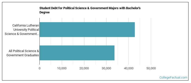 While getting their bachelor's degree at CLU, political science students borrow a median amount of $42,740 in student loans. This is higher than the the typical median of $33,583 for all political science majors across the country.