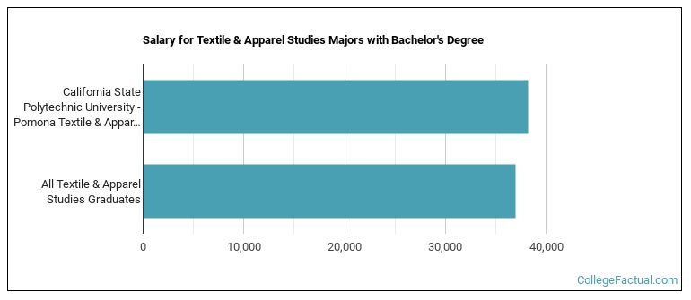 Textile Studies majors who earn their bachelor's degree from Cal Poly Pomona go on to jobs where they make a median salary of $38,262 a year. This is higher than $36,945, which is the national median for all textile studies bachelor's degree recipients.