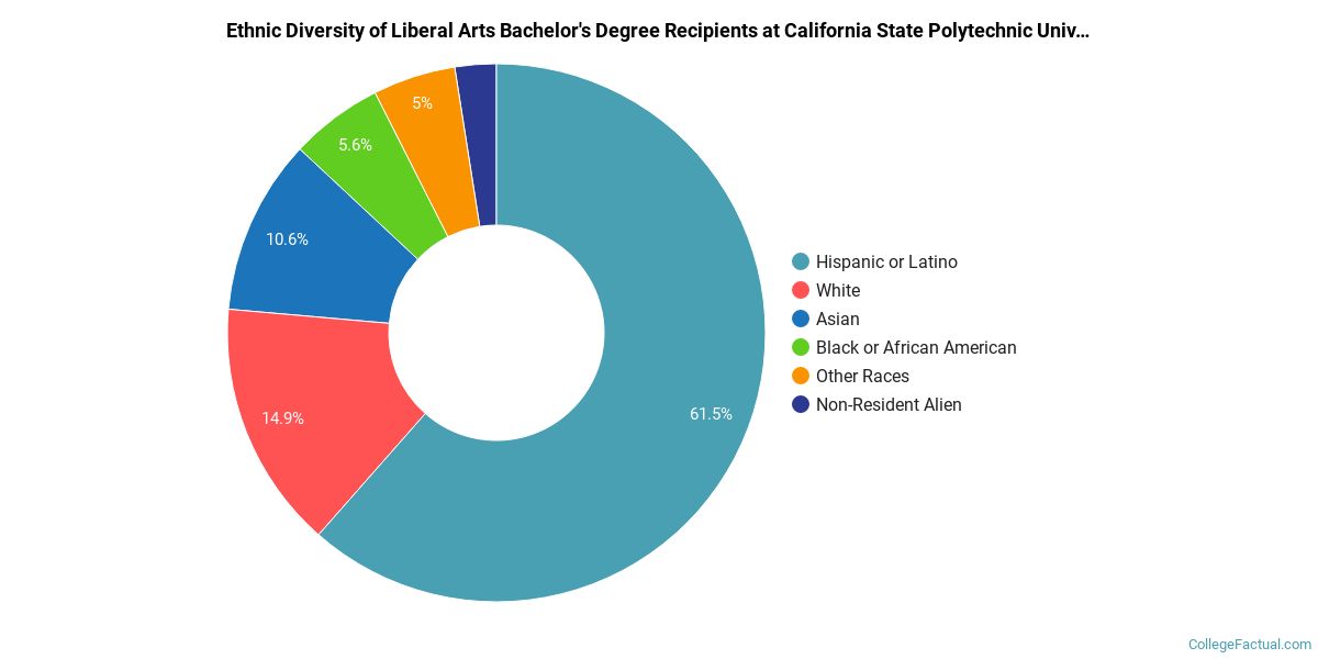 The following table and chart show the ethnic background for students who recently graduated from California State Polytechnic University - Pomona with a bachelor's in liberal studies.