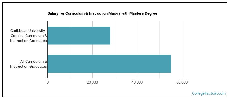 Curriculum majors graduating with a master's degree from Caribbean University - Carolina make a median salary of $27,905 a year. This is less than what their typical peers from other schools make. Their median salary is $55,135.