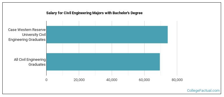 Civil Eng majors who earn their bachelor's degree from Case Western go on to jobs where they make a median salary of $74,266 a year. This is higher than $69,566, which is the national median for all civil eng bachelor's degree recipients.