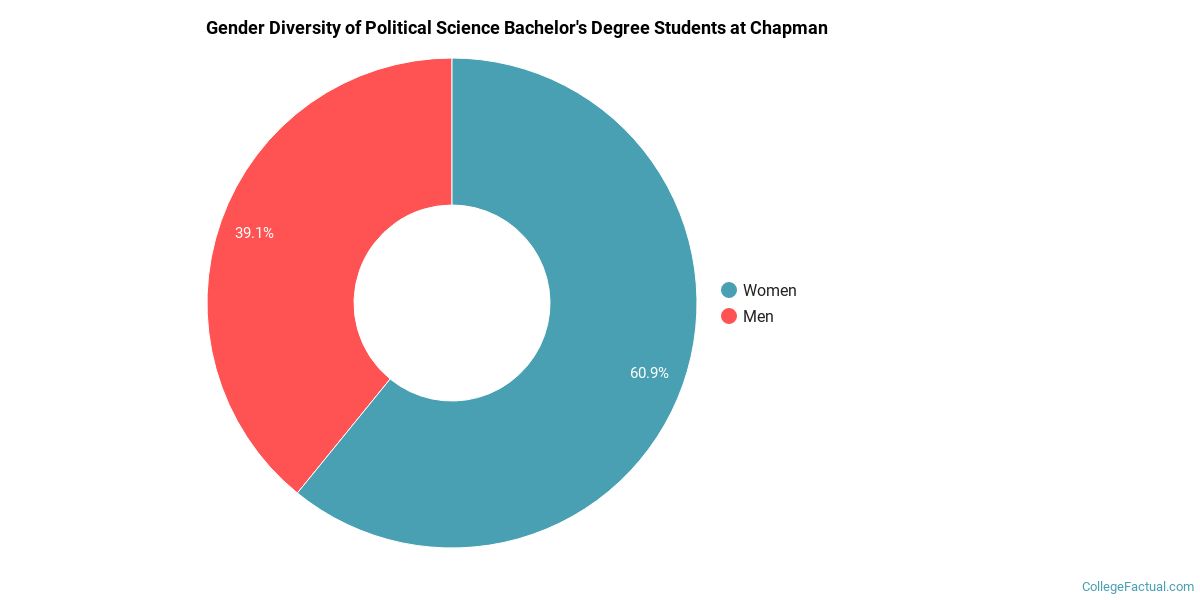 Of the 69 students who earned a bachelor's degree in Political Science from Chapman in 2020-2021, 39% were men and 61% were women.
