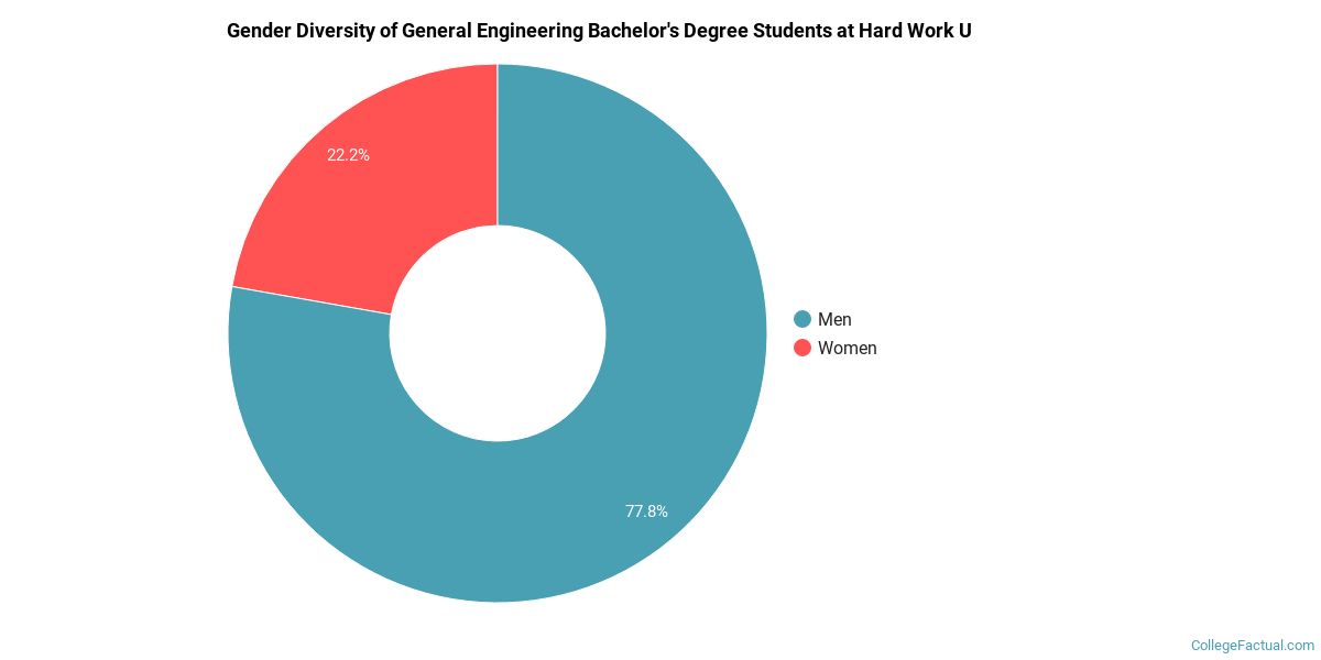 The engineering program at Hard Work U awarded 9 bachelor's degrees in 2020-2021. About 78% of these degrees went to men with the other 22% going to women.