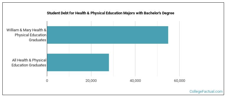 While getting their bachelor's degree at William & Mary, phys ed students borrow a median amount of $54,938 in student loans. This is higher than the the typical median of $28,017 for all phys ed majors across the country.