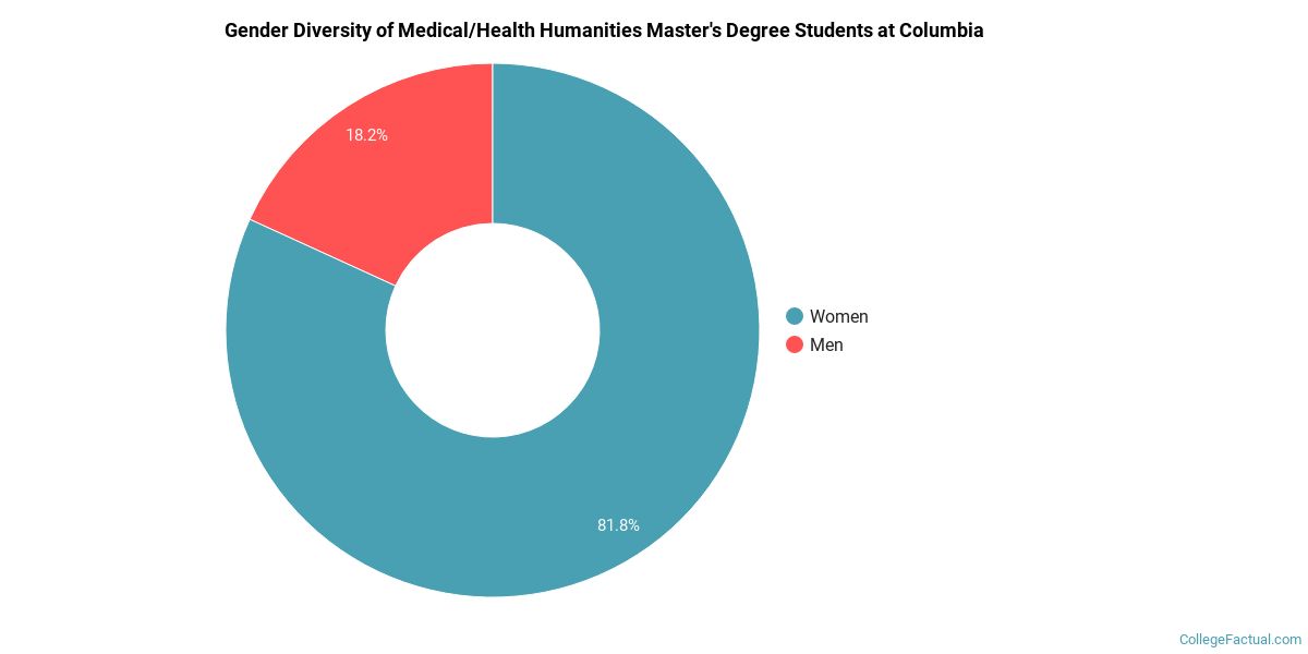 During the 2020-2021 academic year, 33 students graduated with a bachelor's degree in medical/health humanities from Columbia. About 18% were men and 82% were women.