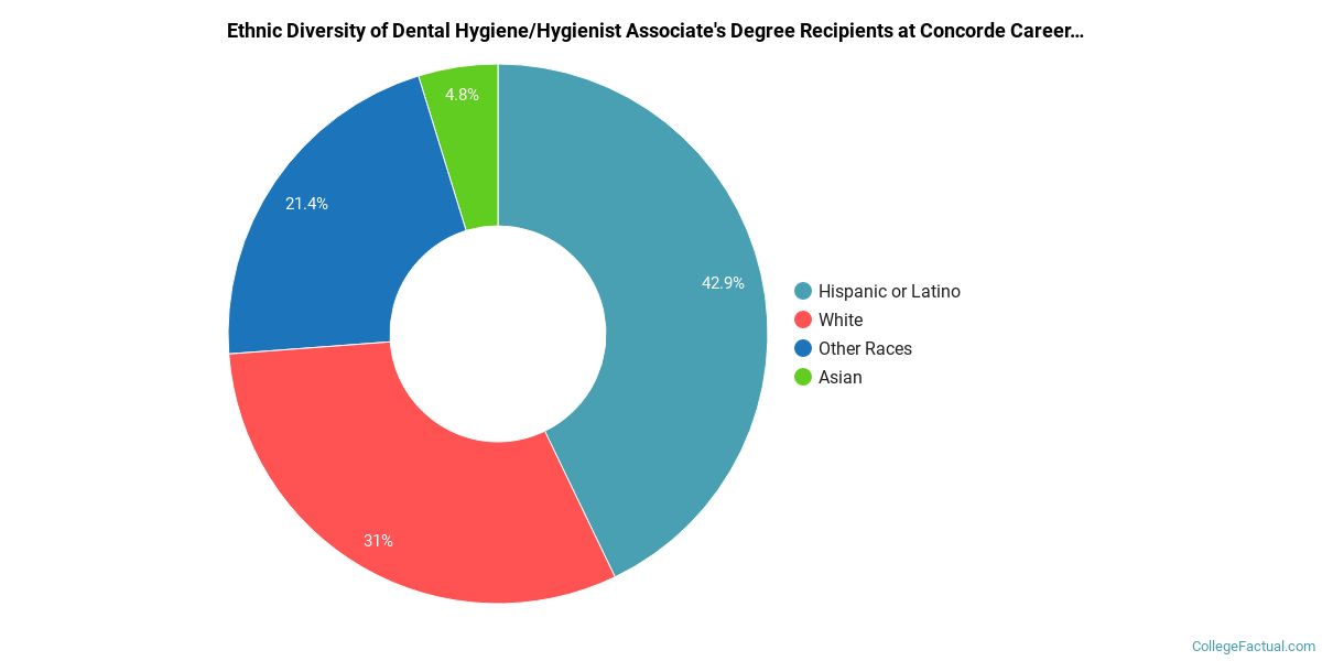 The following table and chart show the ethnic background for students who recently graduated from Concorde Career College - San Antonio with a associate's in dental hygiene.