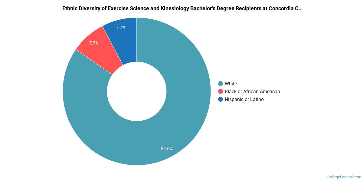 During the 2020-2021 academic year, Concordia College at Moorhead handed out 13 bachelor's degrees in exercise science and kinesiology. This is an increase of 44% over the previous year when 9 degrees were handed out.