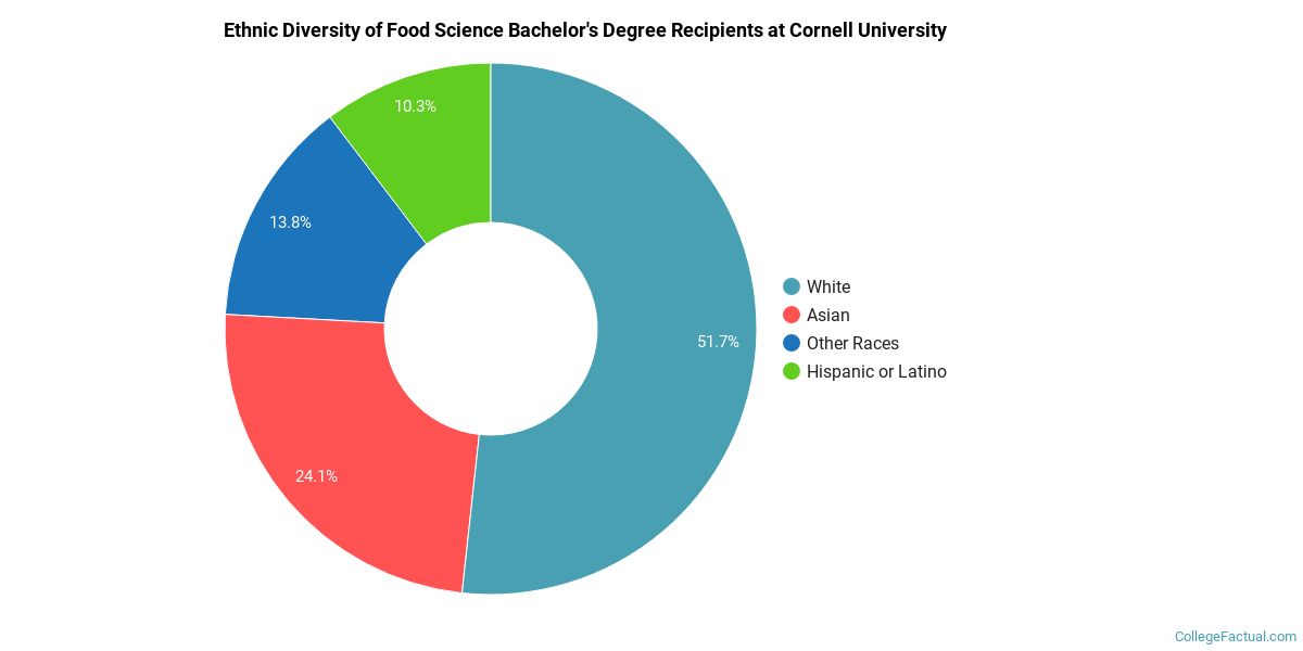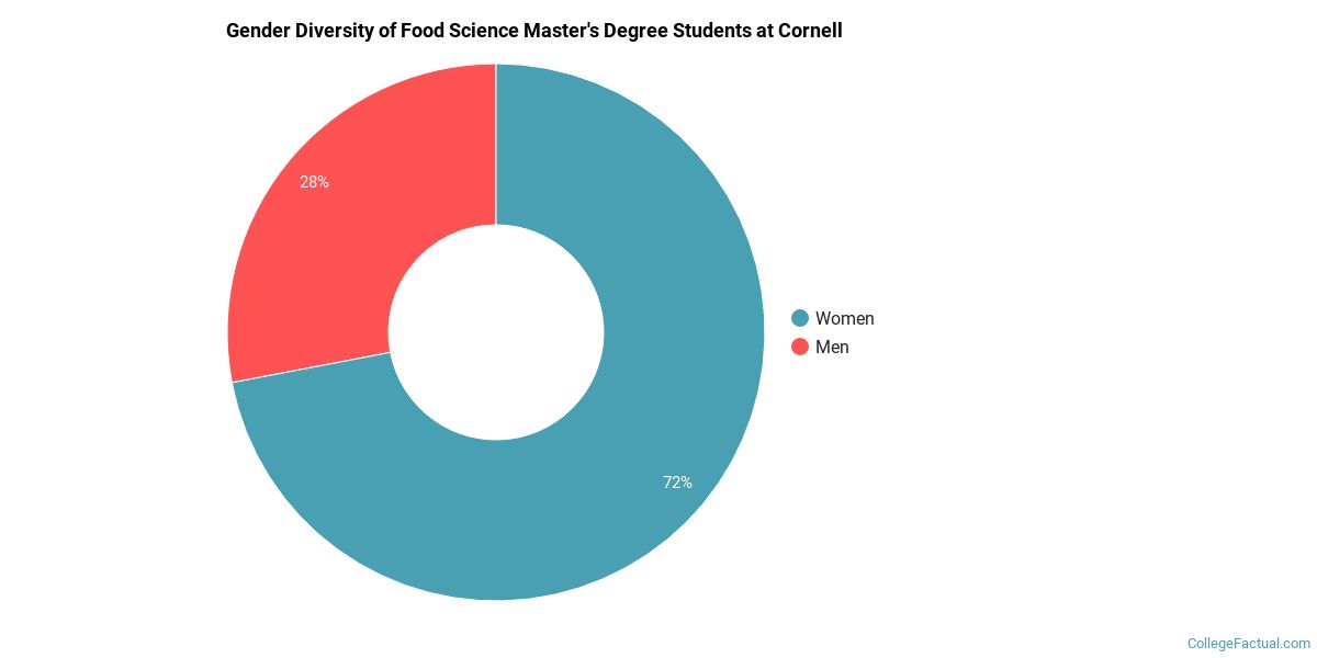 During the 2020-2021 academic year, 25 students graduated with a bachelor's degree in food sciences from Cornell. About 28% were men and 72% were women.