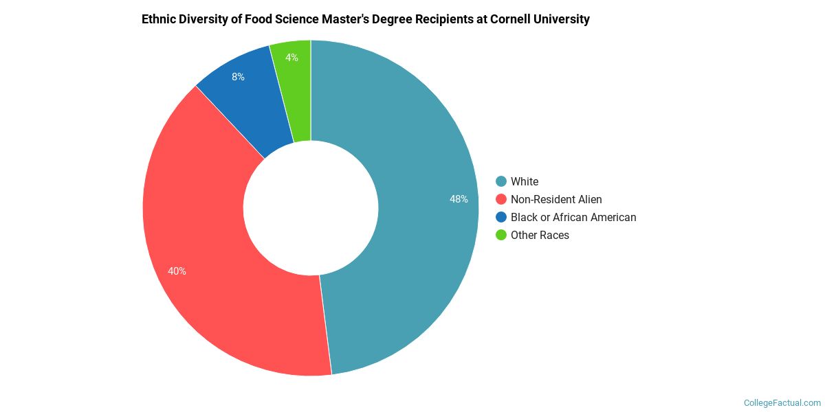 In 2021, 25 students received their master’s degree in food sciences from Cornell. This makes it the #4 most popular school for food sciences master’s degree candidates in the country.
