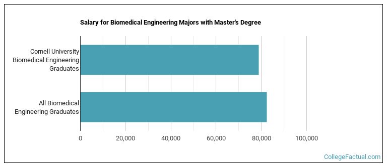 Graduates of the master's bio engineering program at Cornell make a median salary of $78,844. This is less than what their typical peers from other schools make. Their median salary is $82,315.