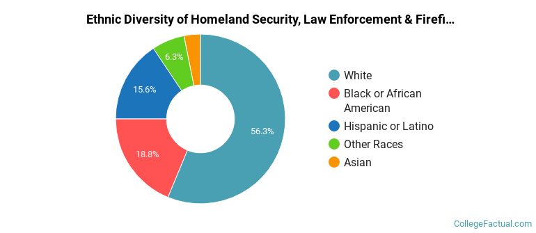 The following table and chart show the ethnic background for students who recently graduated from Cuyahoga Community College District with a associate's in homeland security, law enforcement & firefighting.