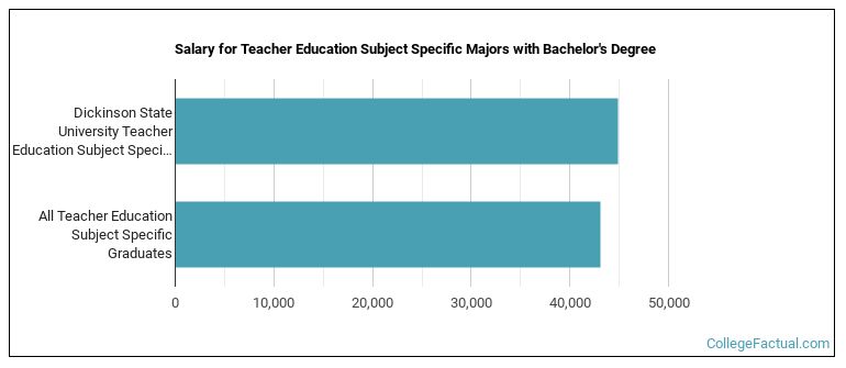 The median salary of subject specific ed students who receive their bachelor's degree at DSU is $44,841. This is higher than $43,086, which is the national median for all subject specific ed bachelor's degree recipients.
