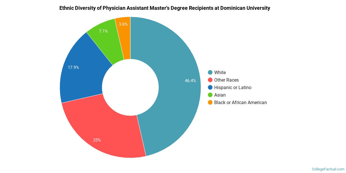 The following table and chart show the ethnic background for students who recently graduated from Dominican University with a master's in physician assistant.