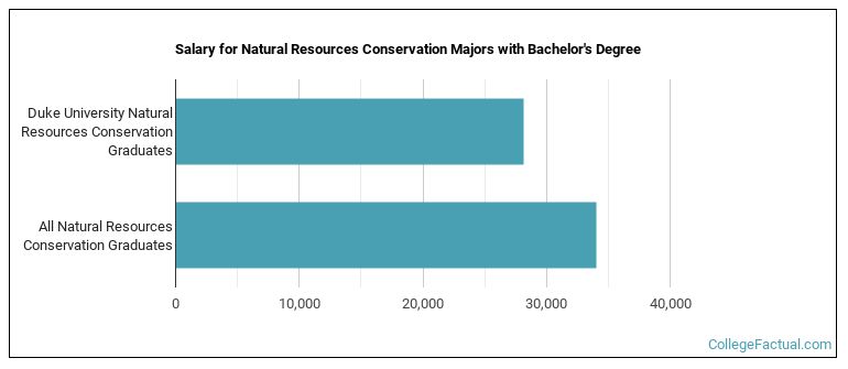 Conservation majors who earn their bachelor's degree from Duke go on to jobs where they make a median salary of $28,121 a year. This is less than $34,020, which is the national median of all conservation majors in the nation who earn bachelor's degrees.