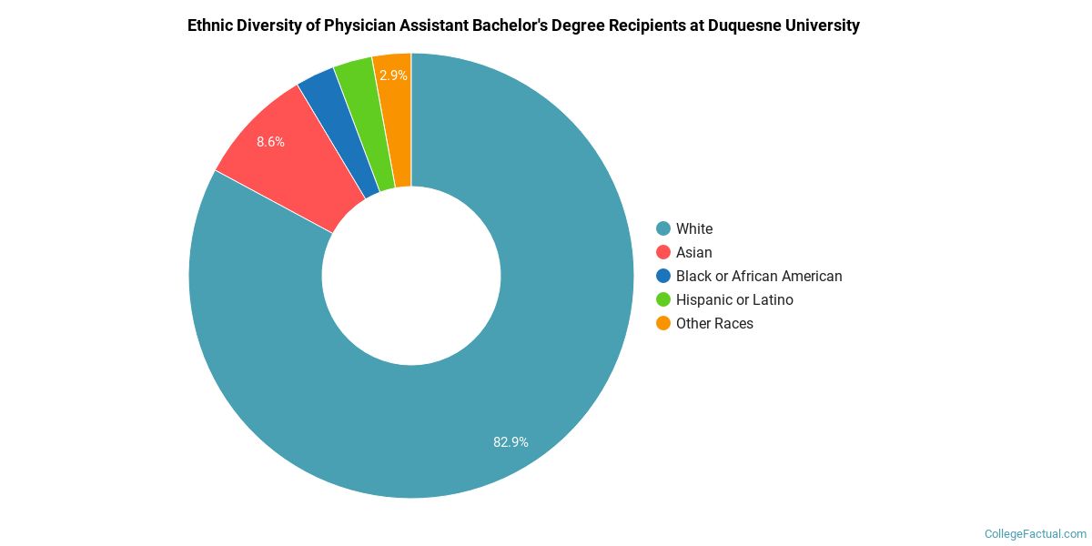 The following table and chart show the ethnic background for students who recently graduated from Duquesne University with a bachelor's in physician assistant.