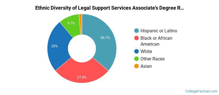 For the most recent academic year available, 15% of legal support associate's degrees went to men and 85% went to women.
