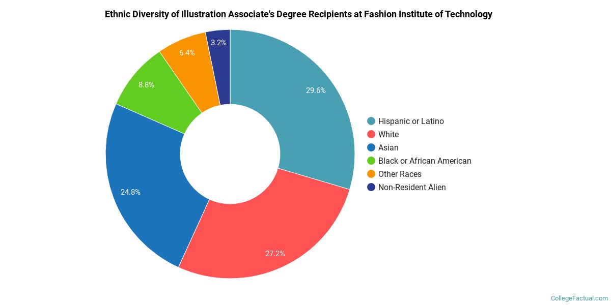 The following table and chart show the ethnic background for students who recently graduated from Fashion Institute of Technology with a associate's in illustration.