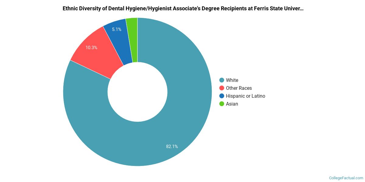 The following table and chart show the ethnic background for students who recently graduated from Ferris State University with a associate's in dental hygiene.